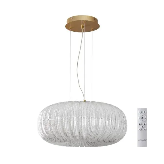 Артикул: 7720/48L; Бренд: Sonex; Коллекция: PIKO LED; Линия: ANGELO; Стиль: Modern; Назначение: Светильник подвесной; место размещения: в гостиную; в спальню; Тип крепления: крепление на планке; Степень защиты: IP20; Общая мощность, W: 48; Площадь освещения, м2: 28; Напряжение питания, V: 220 - 240; Класс защиты: 1; Класс электро-безопасности: I; Температурный режим: 0-(+40); Количество ламп: 1; Тип ламп: светодиодная (LED); Тип цоколя: LED; Мощность ламп, W: 48; Max мощность лампы, W: 48; Световой поток, Lm: 5700; Цветовая температура, K: 3000-6500; Материал каркаса: металл, Металл; Материал плафона: акрил, Акрил; Поверхность каркаса: крашеный; Поверхность плафона: глянцевый; Цвет: прозрачный/золотой; Цвет каркаса: золотой, Золотой; Цвет плафона: прозрачный, Прозрачный; Наличие пульта: Беспроводной пульт ДУ; высота: 215; Диаметр, мм: 500; Вес, кг: 6.4; Вес упаковки, кг: 6.4; Длина упаковки, см: 560; Ширина упаковки, см: 560; Высота упаковки, см: 340; Объем упаковки, м3: 0,10662; Штрихкод: 4690344141017